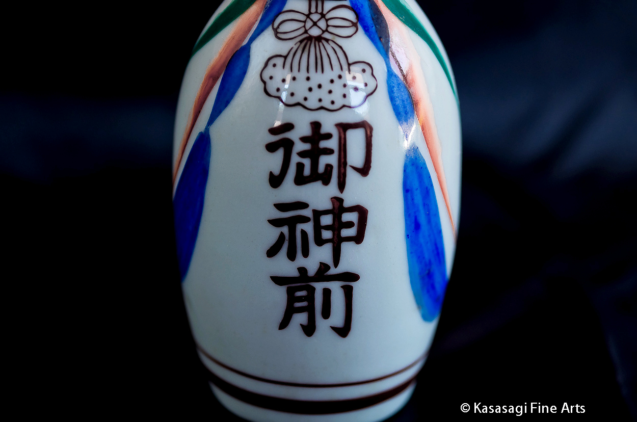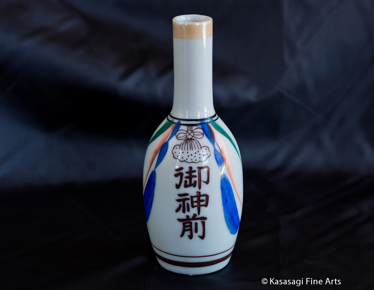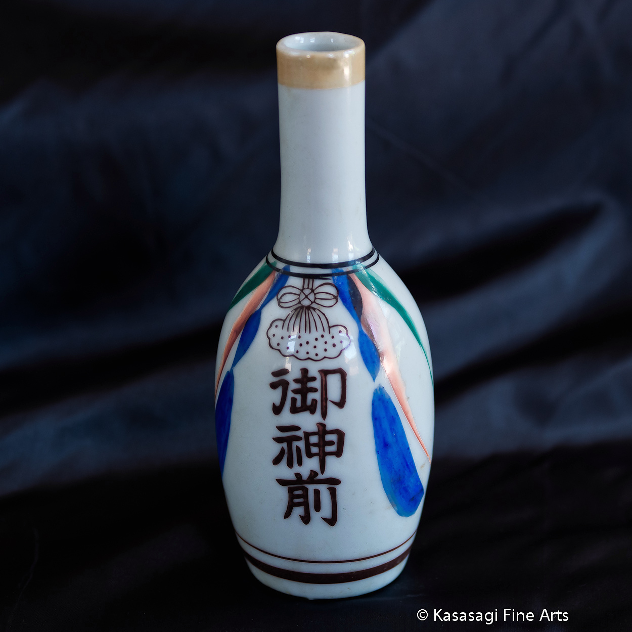 A charming and authentic Fine Porcelain Sake Bottle from the late Meiji era 1890s. Used in Shinto Shrine Alter offerings of Sake. Excellent to use as a bud vase.