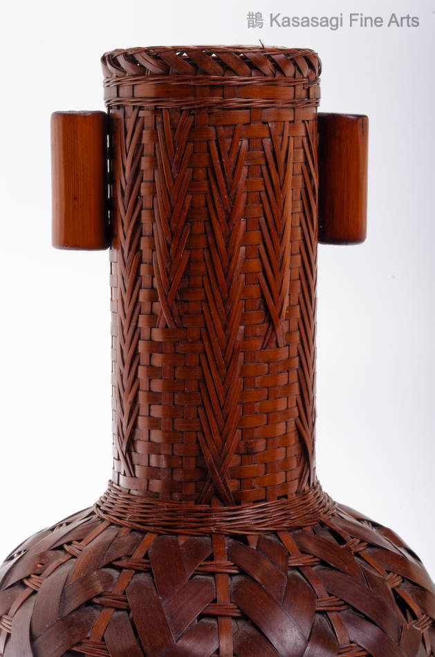 A Bamboo Ikebana Basket Vase approximately 28 cm in height and 20 cm in diameter. A glass insert is included as it is missing the Bamboo water liner. In very good condition.