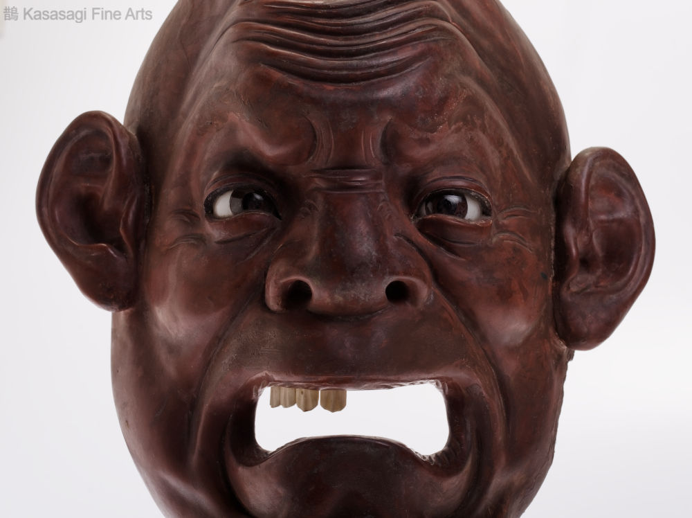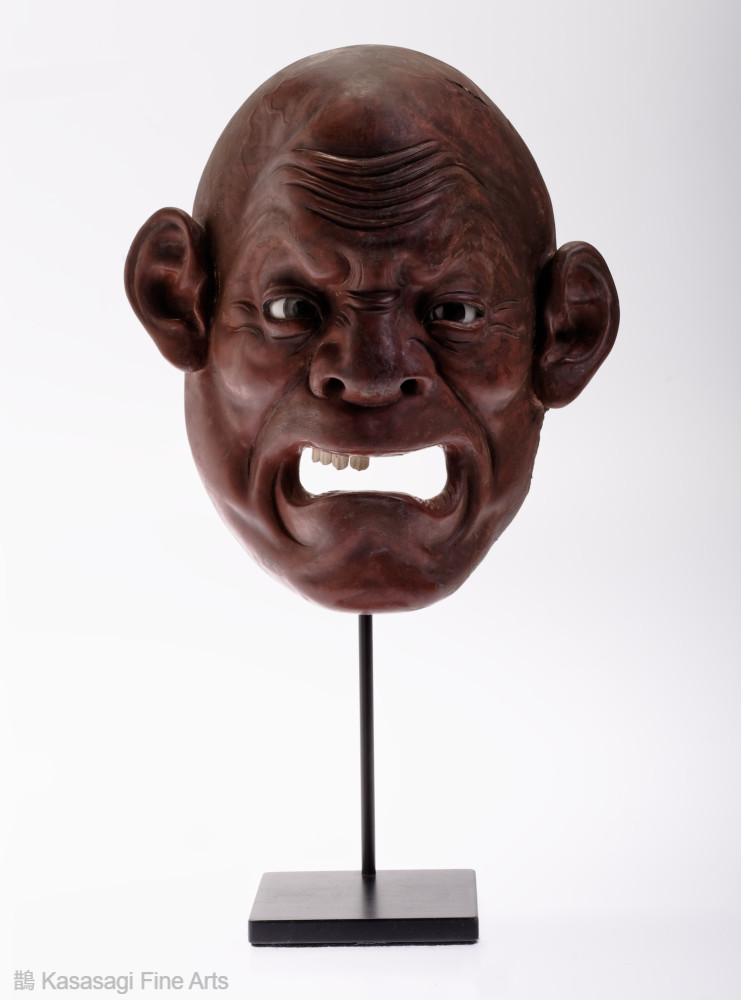 A very unique and realistic Kojo Okina Noh Mask from the Edo Era. Signed on the reverse it has an imposing presence of a Kojo (old man) used in Kyogen Noh Theatre performances.