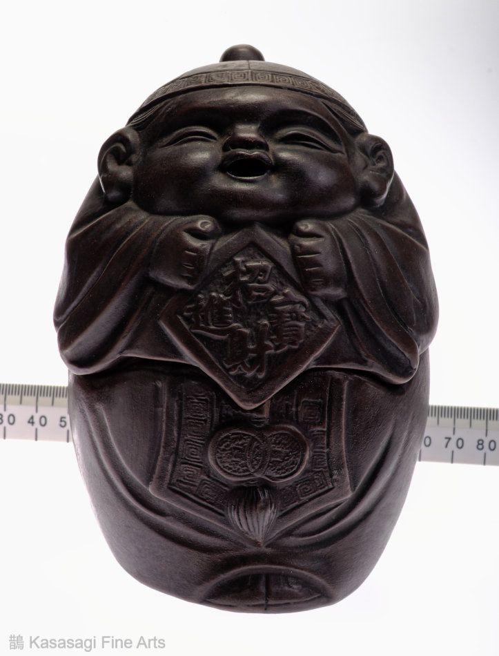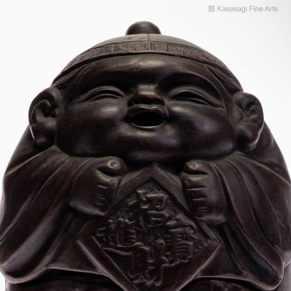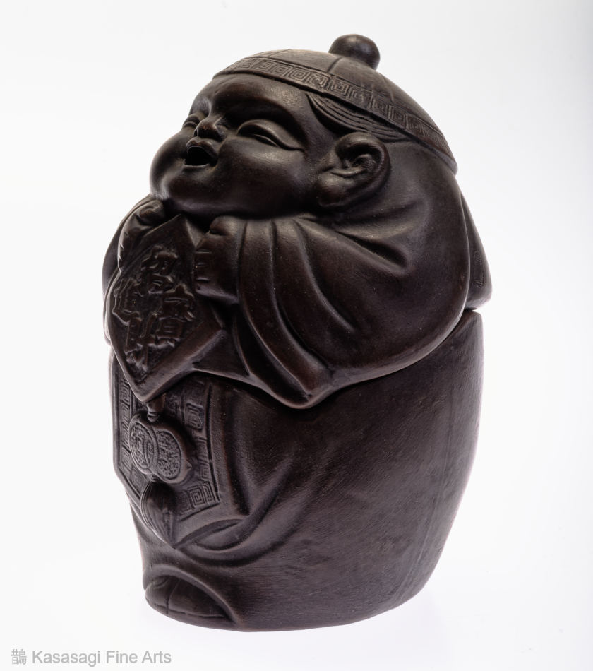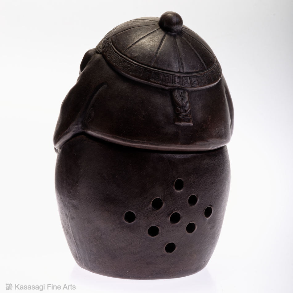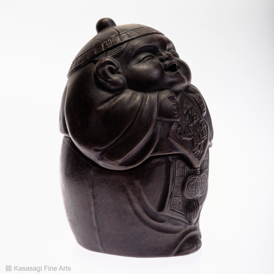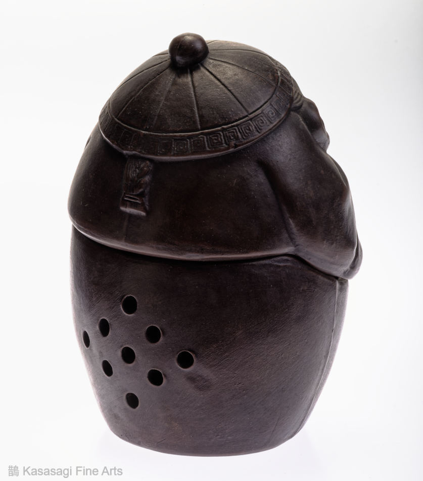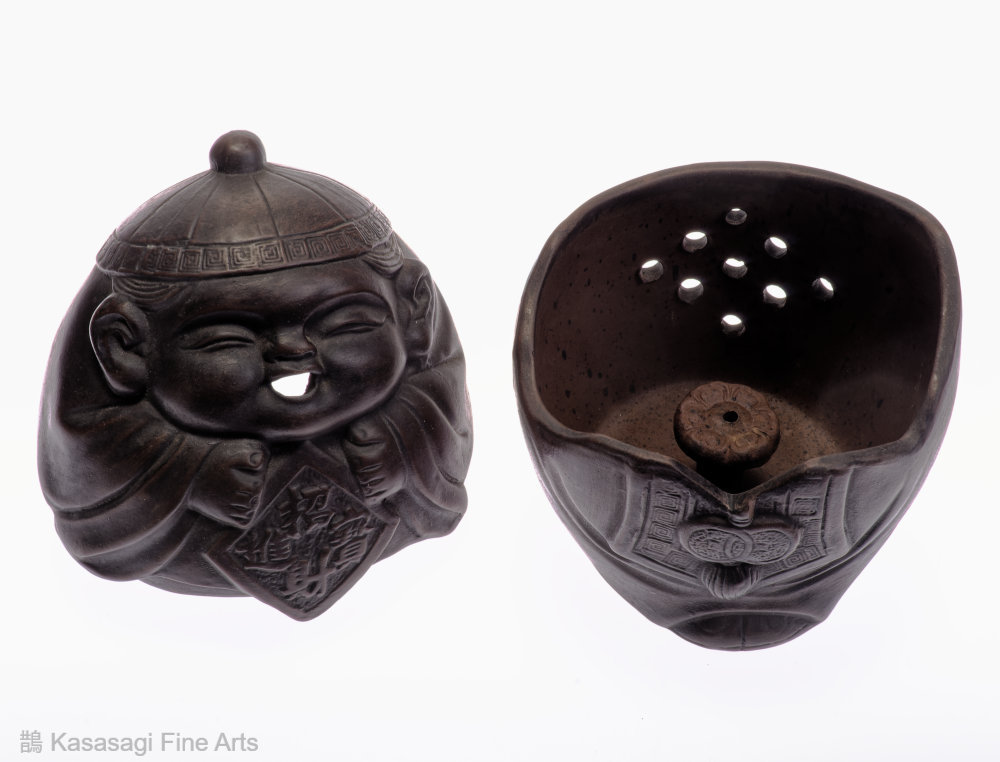 A Japanese Bizen Pottern Incense Burner depicting a Japanese deity. Appearing to be a young version of Ebisu the deity of prosperity and good fortune. The incense burner also known as a koro is in very good and unused condition.