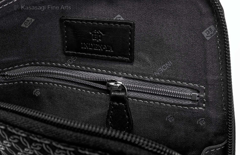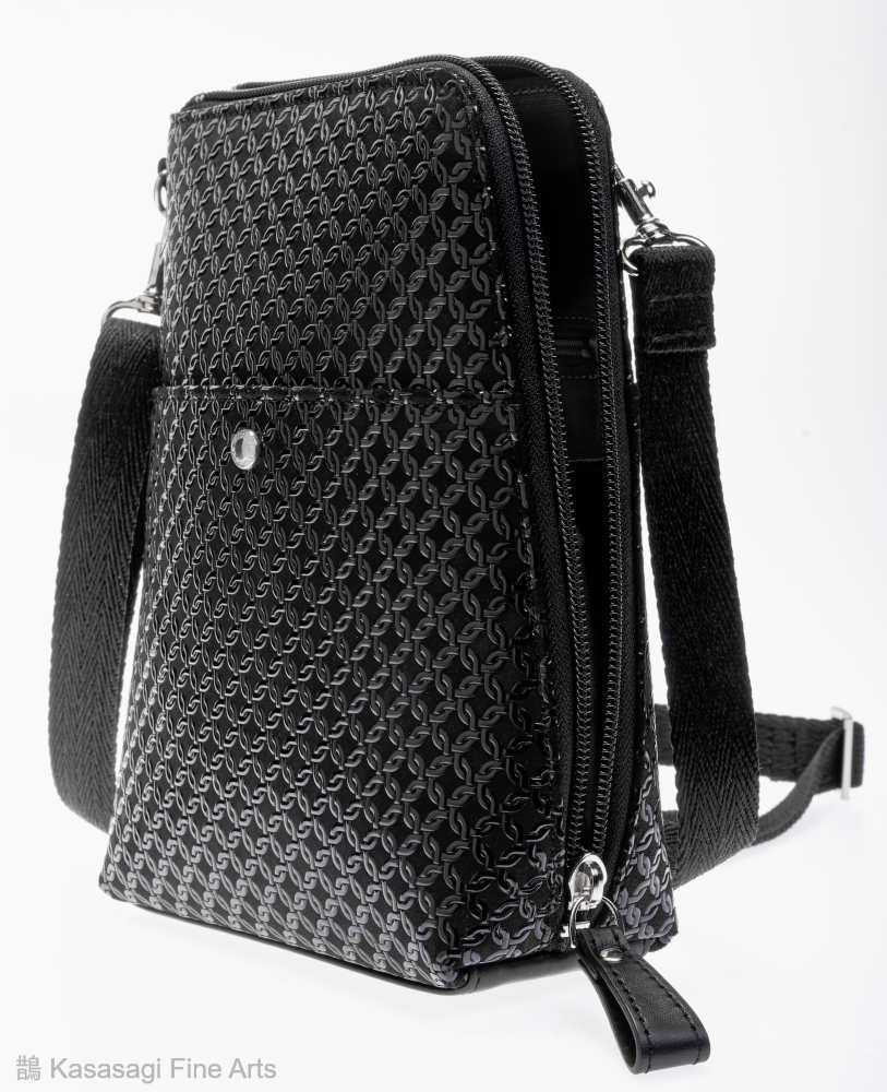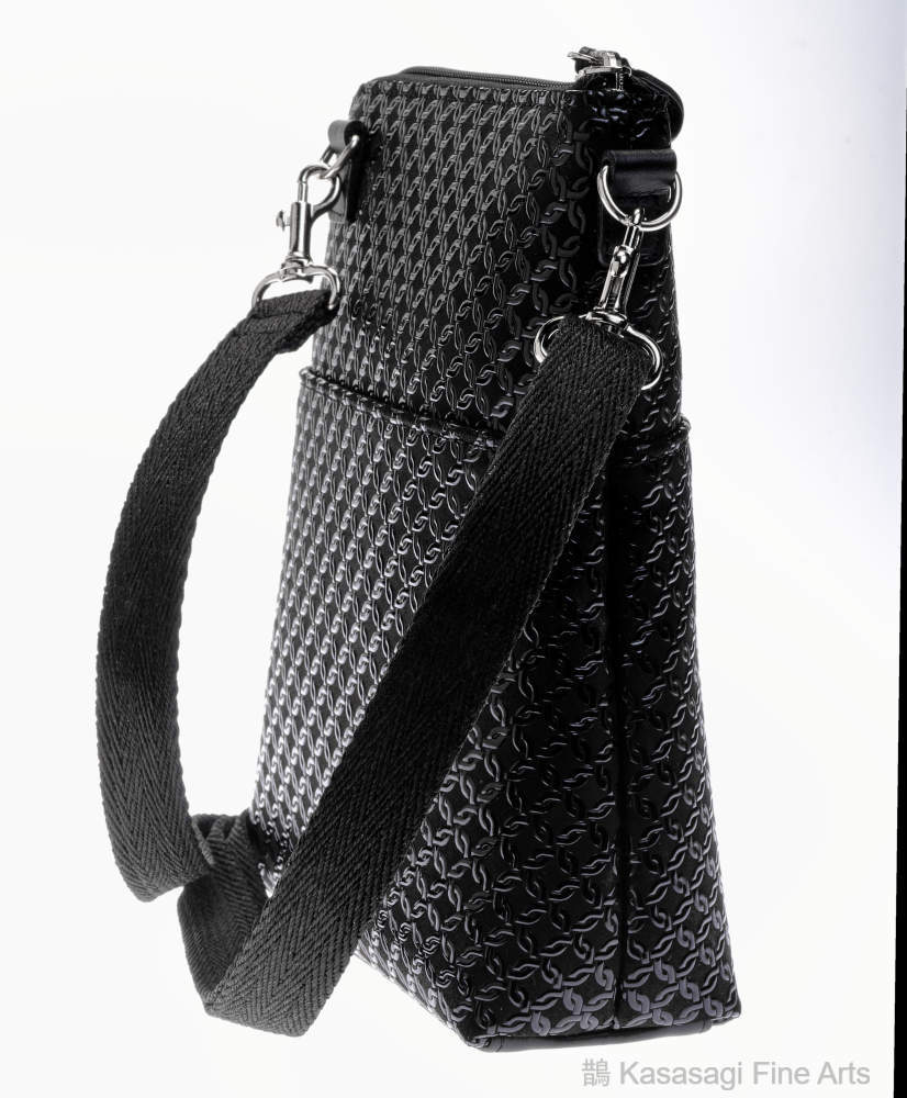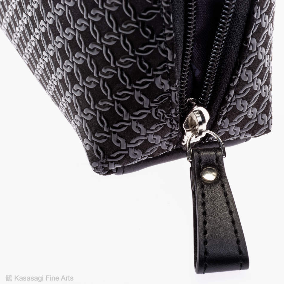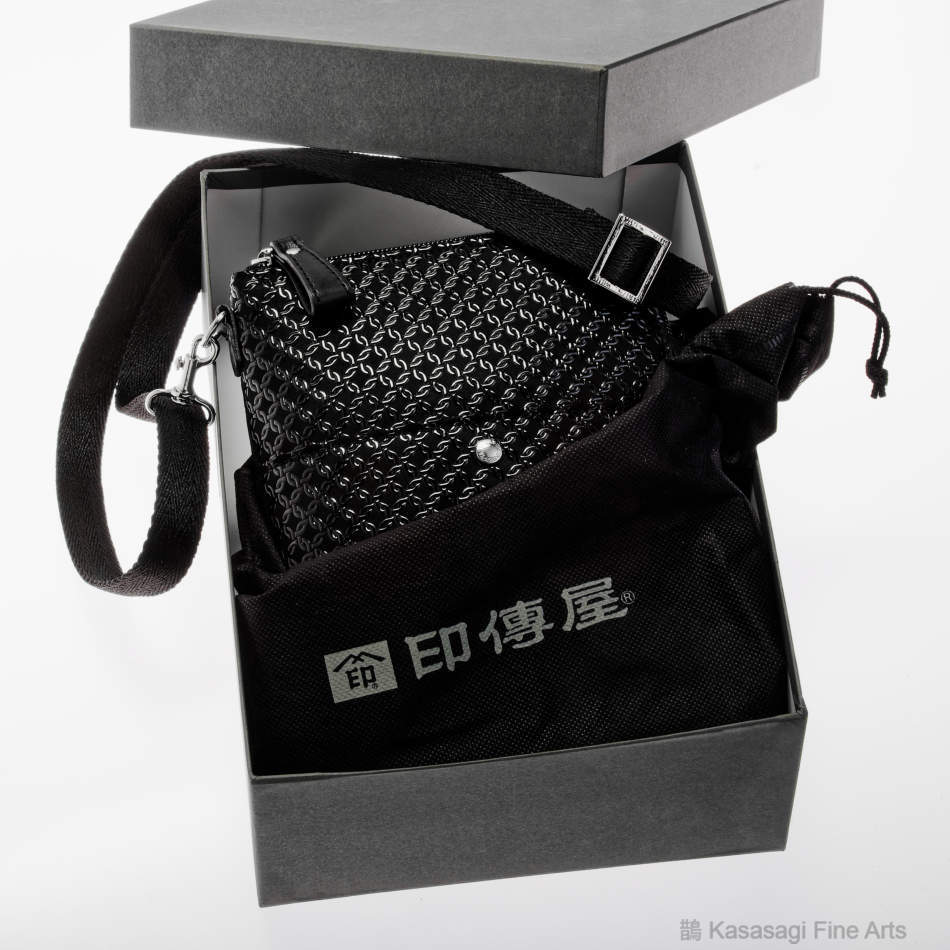 Beautifully styled with an embossed chain of rings pattern applied using many layers of Urushi lacquer over several weeks decorate the bag.