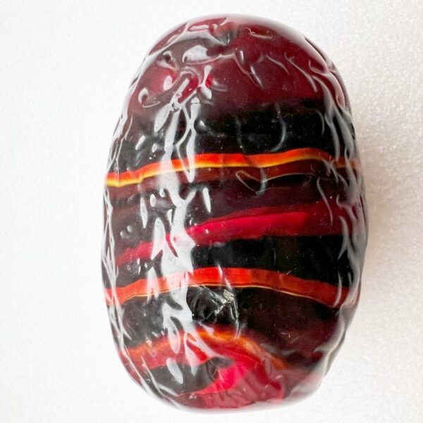 A striking Large 4 cm Glass Ojime from mid 20th Century Japan. Made by a highly skilled glass craftsman it features striking colours. A very substantial one of a kind piece, full of character and translucence with vibrant colours and deep hues. It would also be a great choice for a pendant. Sold as is.