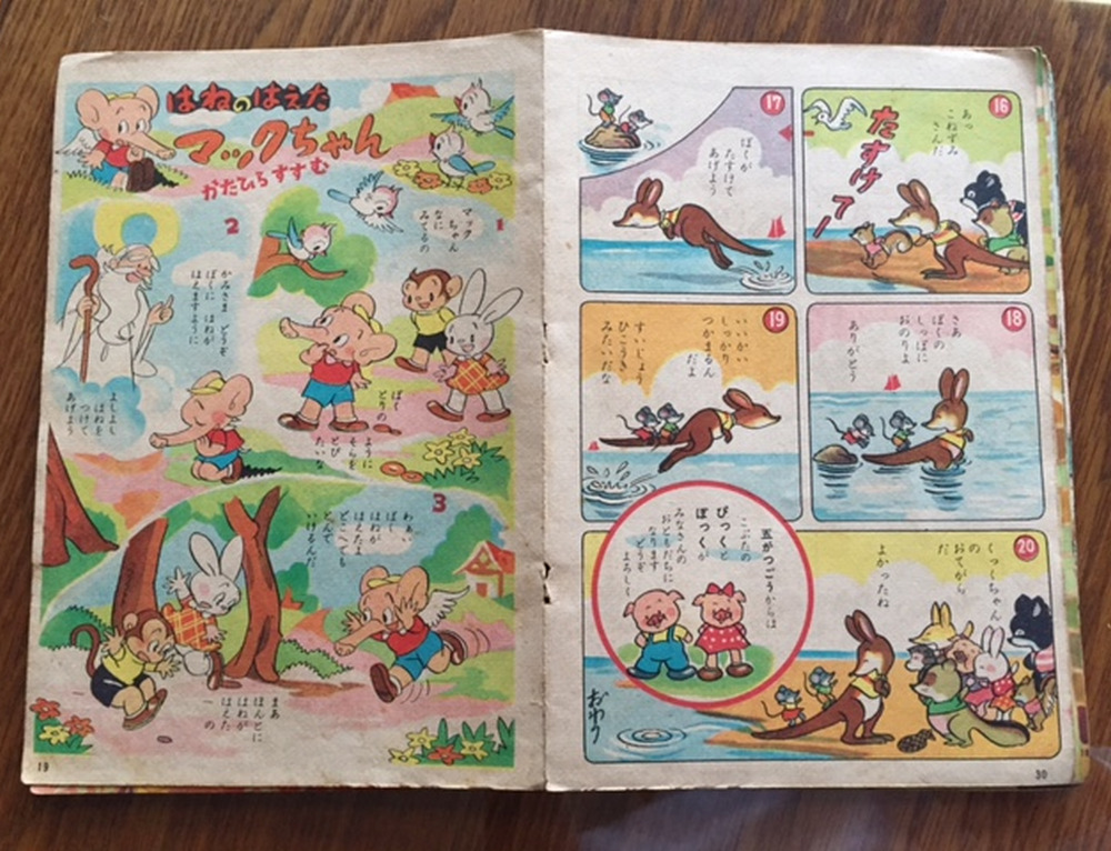 A delightful children’s book from post war Japan. Colourful lithographic depictions of traditional stories beautifully illustrated. See images of some of the pages in this beautiful book.