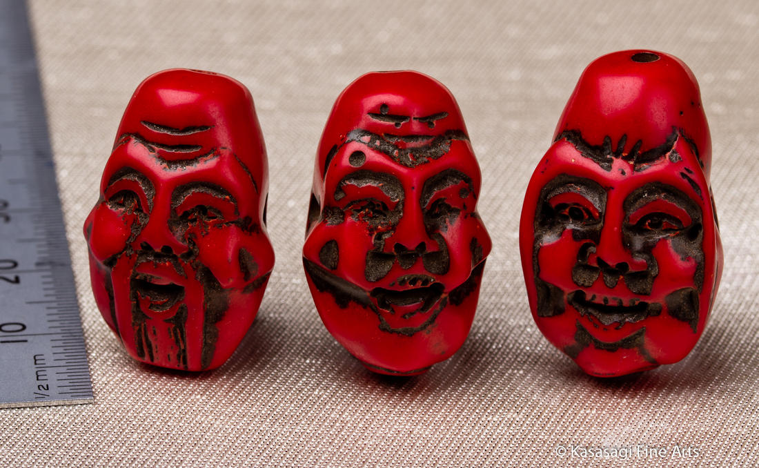 Three old men Ojime hand carved from red coral estimated to be from early to mid 20th Century Japan – 1920s to 1950s